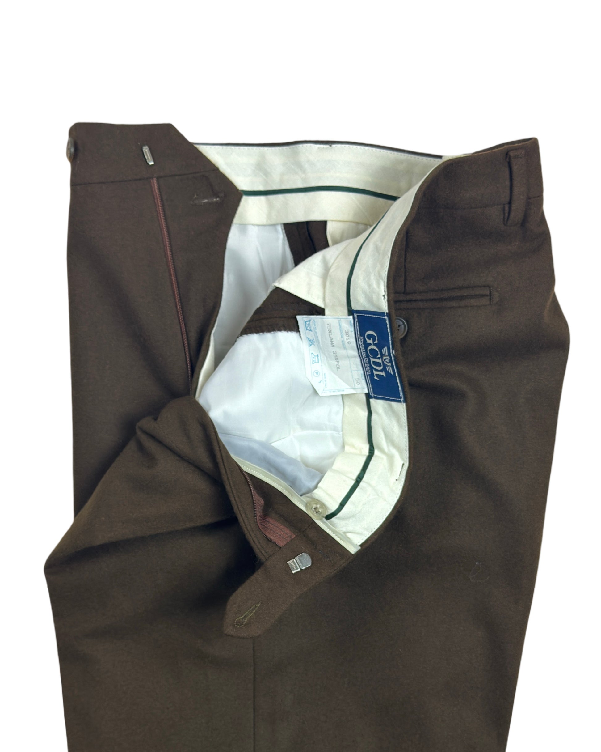 Pantalone vintage in misto lana di qualità superiore, caratterizzato da una grammatura pesante che garantisce durabilità e struttura nel tempo. La tonalità kaki neutrale si abbina facilmente a qualsiasi guardaroba, mentre la doppia pence conferisce un'eleganza sartoriale distintiva. Ideale per chi ricerca capi autentici con carattere, questo capo second hand rappresenta un'eccellente scelta per uno stile consapevole e sofisticato.