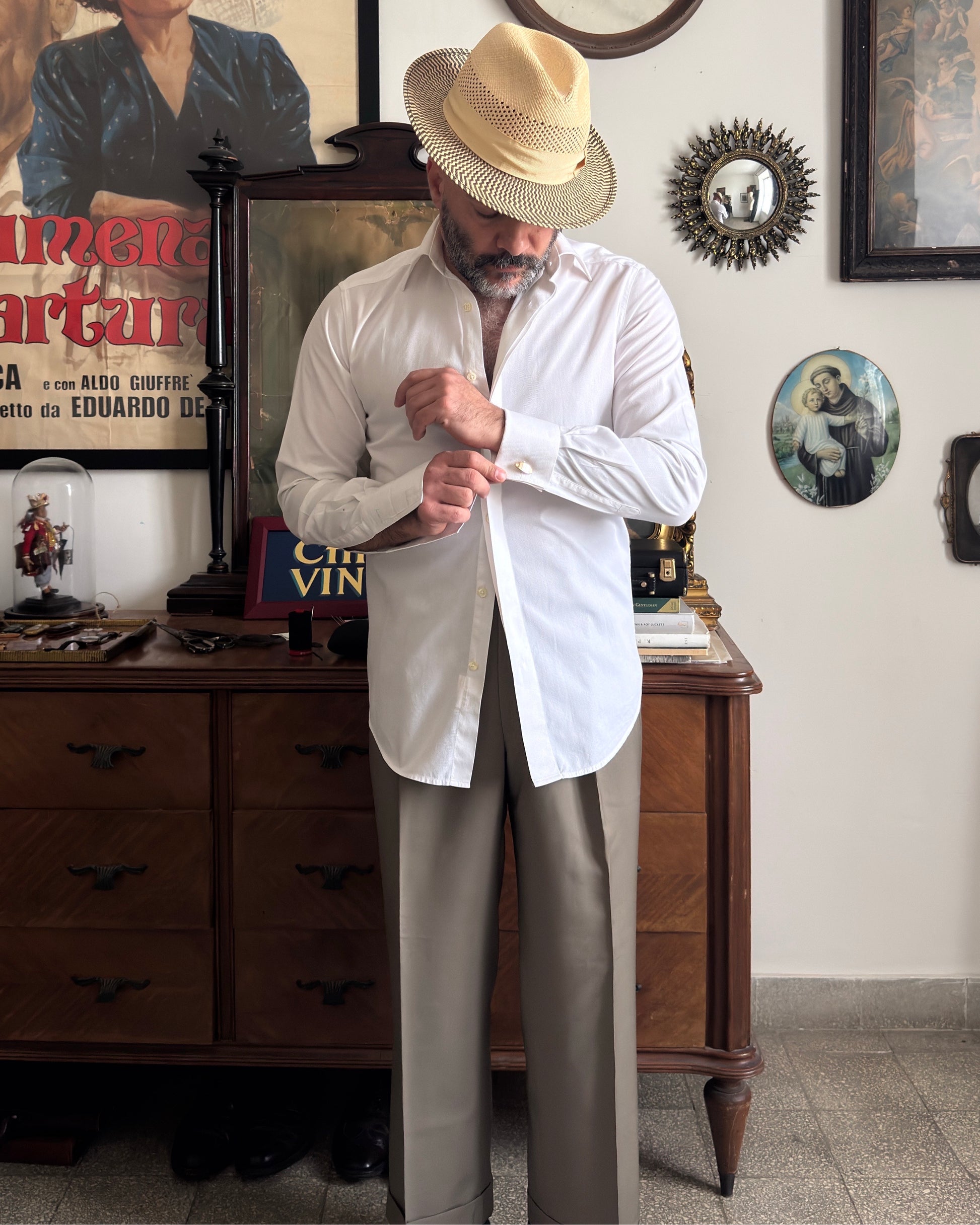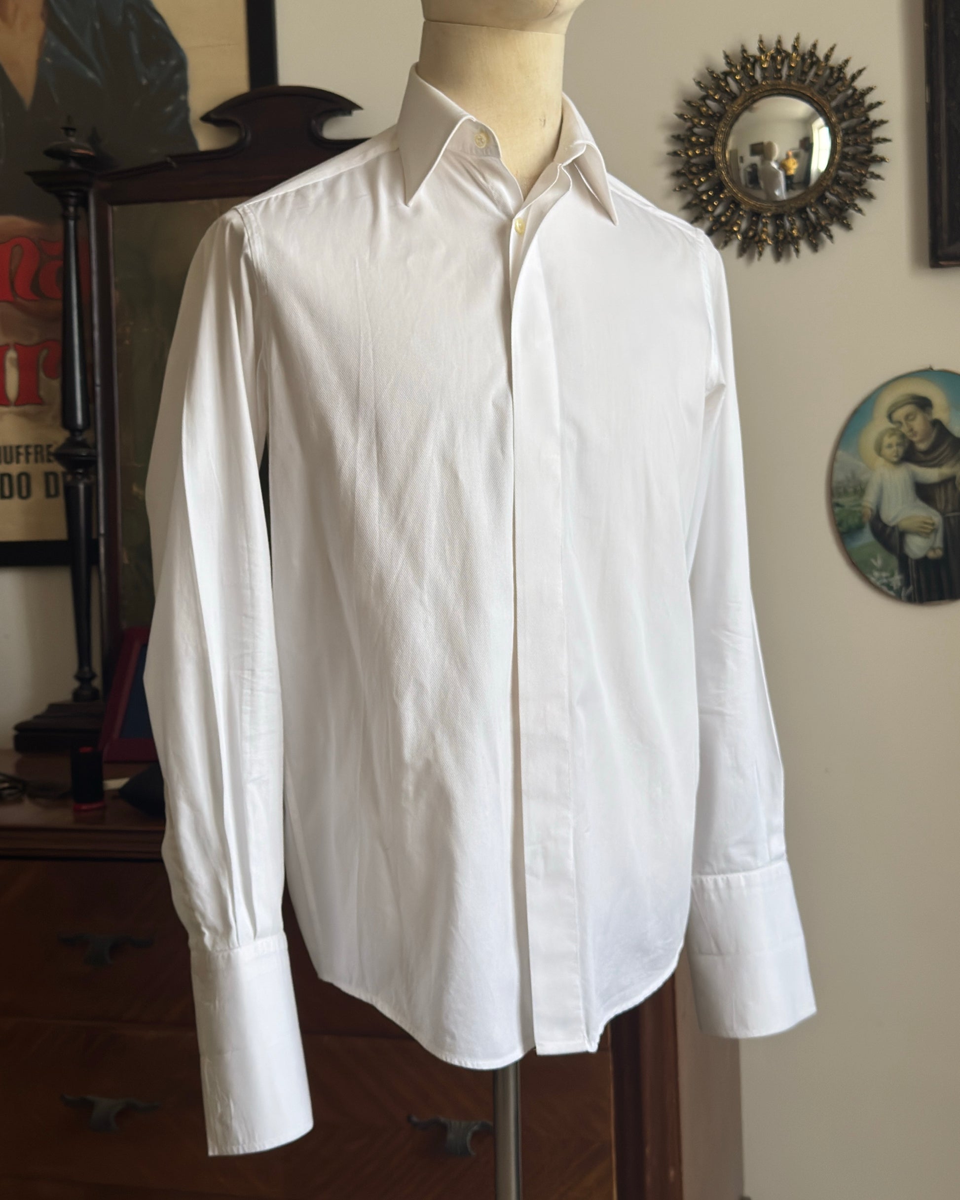 Elegante camicia da cerimonia del marchio Pal Zileri, realizzata in puro cotone bianco. Caratterizzata da collo all'italiana e polsini per gemelli, perfetta per occasioni formali. La canaletta copri bottone aggiunge un dettaglio raffinato tipico delle camicie di qualità.