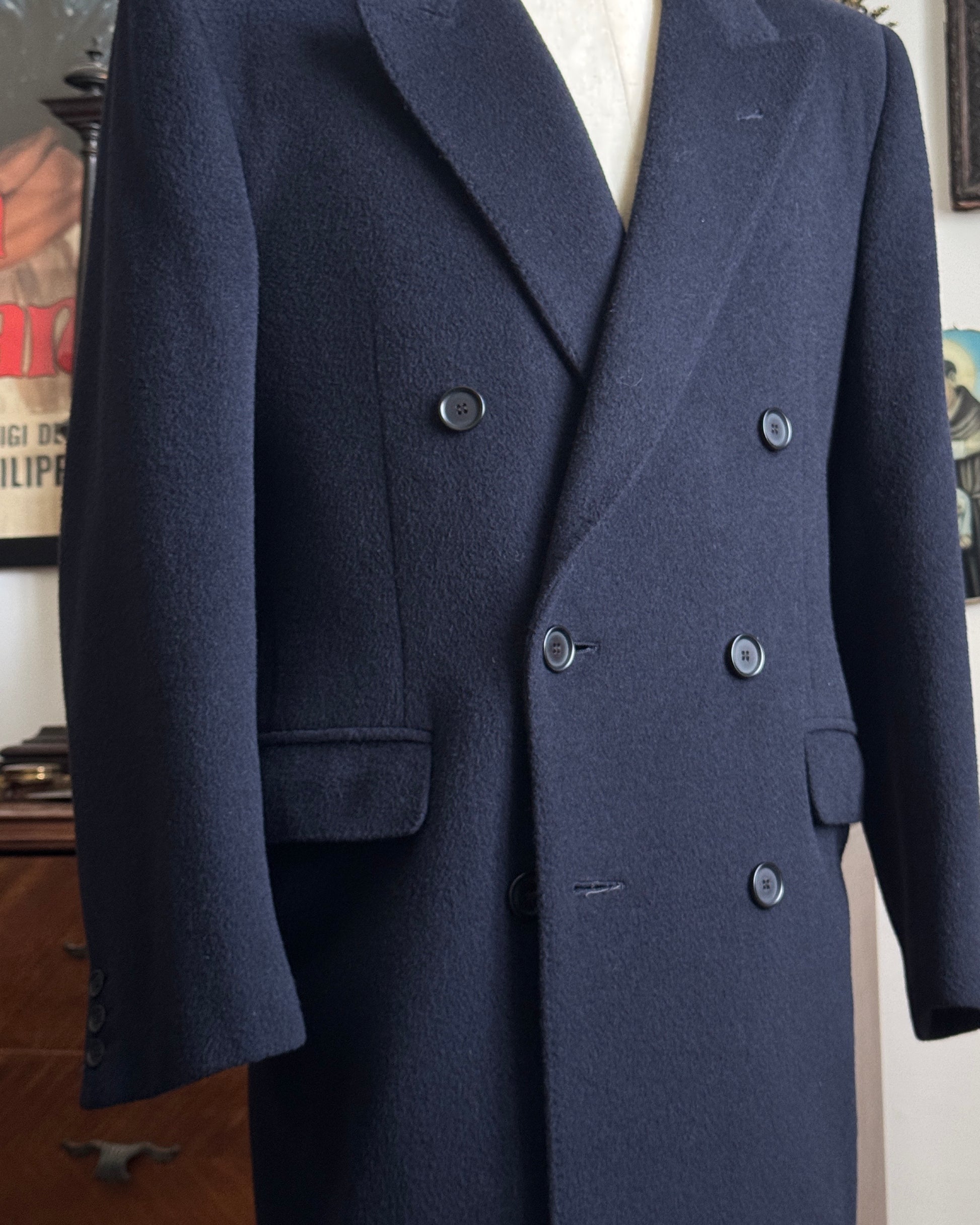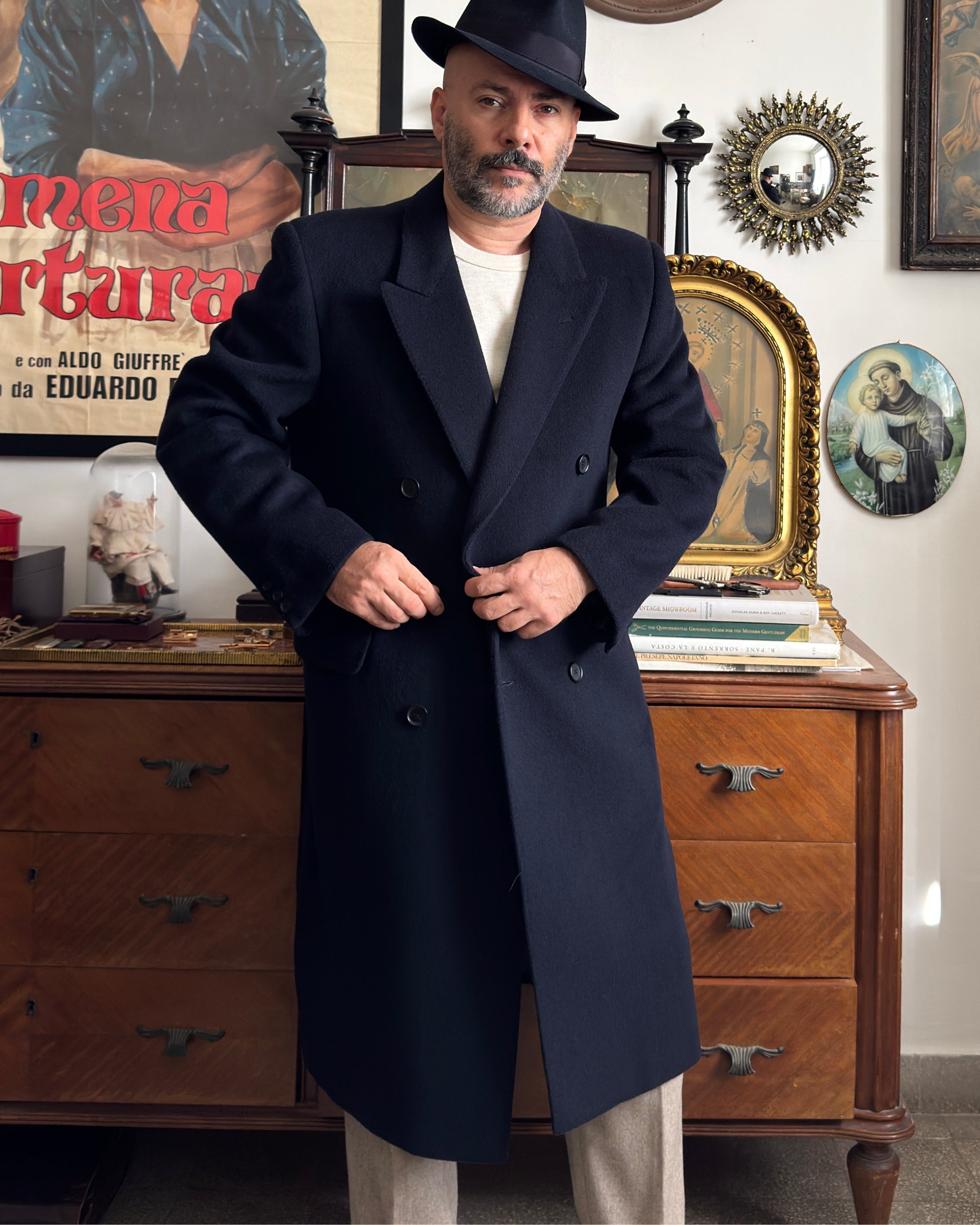 Questo cappotto vintage doppio petto è realizzato in morbida lana di colore blu, ideale per chi cerca un capo elegante e confortevole. La struttura doppio petto dona un tocco classico e raffinato, mentre il tessuto caldo assicura comfort duraturo durante le giornate più fresche. Perfetto per completare un look sofisticato con stile senza tempo.