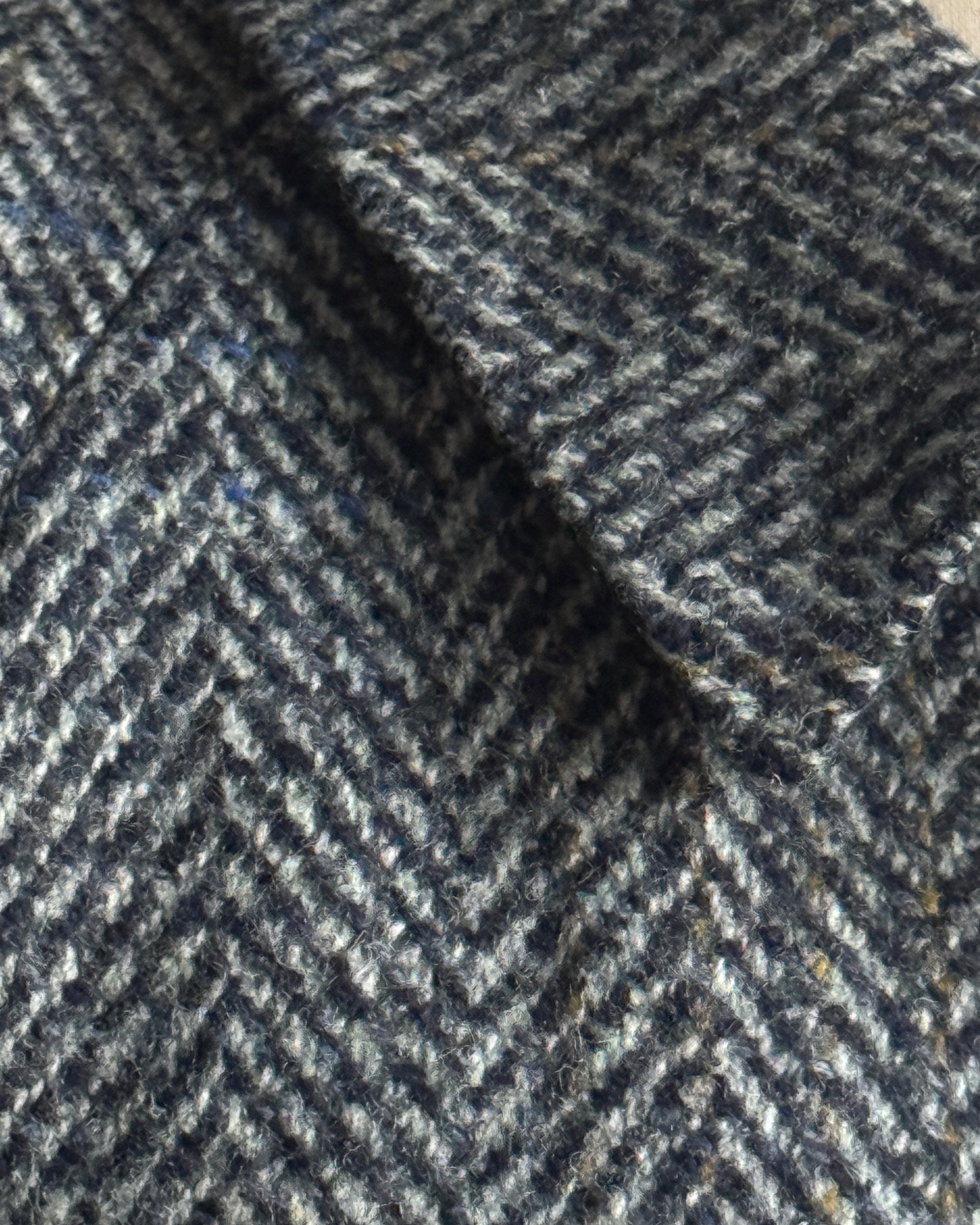 Cappotto vintage realizzato in pregiato loden di lana pura, caratterizzato da un elegante tessuto tweed a spina di pesce. La palette cromatica spazia tra tonalità di grigio e blu, arricchite da sottili accenti di colori complementari tipici della tradizione tweed. Un capo senza tempo che unisce la solidità costruttiva del loden alla raffinatezza del pattern tessile classico, ideale per chi apprezza l'autenticità e la qualità artigianale dei capi d'epoca.