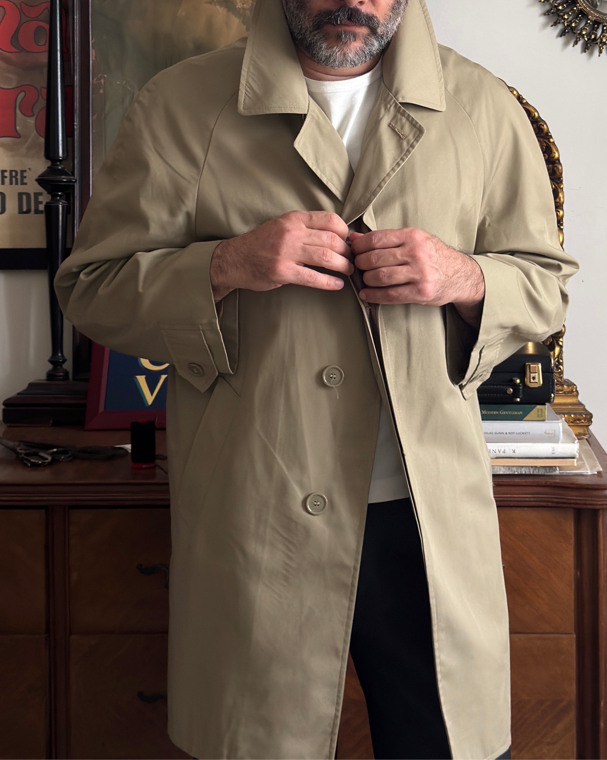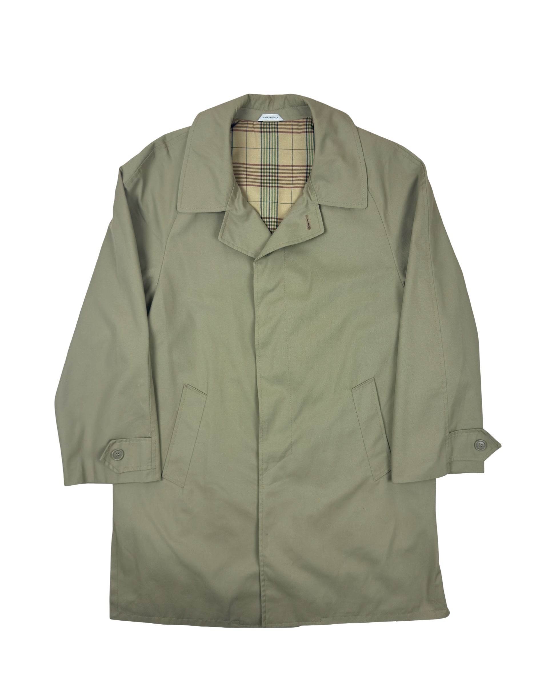 Elegante trench corto in misto cotone dal design senza tempo. Caratterizzato da spalle raglan che garantiscono una vestibilità comoda e moderna, collo camicia e chiusura singola con bottoni sul petto. Due pratiche tasche laterali completano il capo. Perfetto per uno stile vintage raffinato e versatile.