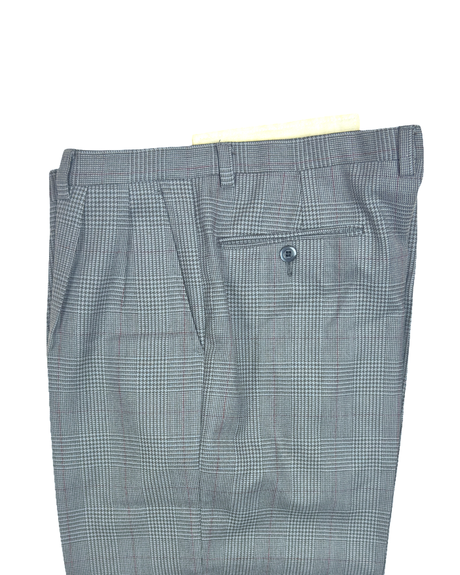 Questo vestito vintage firmato Facis presenta una lavorazione in lana di alta qualità con due bottoni in evidenza. Il design senza spacchi posteriori assicura una linea pulita e raffinata, mentre il colore grigio con motivo window check bordeaux conferisce un tocco sofisticato e originale, ideale per chi cerca un capo elegante dalla forte personalità.